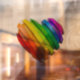 SlipperyJoe's pride heart shape multiple horizontal layers glossy reflective material shiny three-dimensional look rainbow spectrum celebrate love diversity inclusivity three-dimensional artistic gay gifts LGBTQIA visually striking modern design