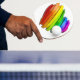 SlipperyJoe's pride heart shape multiple horizontal layers glossy reflective material shiny three-dimensional look rainbow spectrum celebrate love diversity inclusivity three-dimensional artistic gay gifts LGBTQIA visually striking modern design