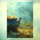 SlipperyJoe's Saint Patrick's Day large ornate pot gold coins fantasy treasure folklore bokeh effects magical atmosphere tall lush grassy area vibrant colour small flowers plants misty blue dreamy background artistic light particles dynamic motion LGBTQIA gay pride gifts