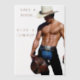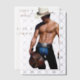 SlipperyJoe's save horse ride straw cowboy hat muscular man shirtless torso holding saddle well-defined physique chiseled six-pack hat chaps saddle black belt silver buckle rancher life muscles rippling wild ride ahead bold rugged western vibe artistic gay pride gifts LGBTQIA yeehaw blue jeans