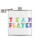 SlipperyJoe's Team Player words gradient rainbow c Hip Flask