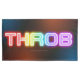 SlipperyJoe's throb rainbow-like gradient thick capitalised letters dotted texture filling blurred blue orange red hues swirls intensifying visual impact neon dreamscape ambient lighting psychedelic neon signage art gay pride gifts edgy branding LGBTQIA hypnotic design artistic charged word choice