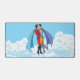SlipperyJoe's two superheroes kissing flying carto Desk Mat