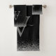 Modern bath towel set in black and sliver glitter, elegantly adorned with your script monogram, first name and initial.
