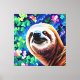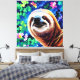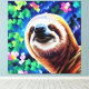 Sloth - 40x40 Canvas Print is a coloful art rendering of a sloth's face surrounded by flowers. This image was produced by FancifulFusion -- a subsidiary of ArtistsQuest -- utilising various art styles and influences, then finalised by ArtistsQuest.