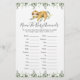 Sloth animals themed baby shower name the baby animals game card features a watercolor sloth animals illustration and watercolor greenery eucalyptus garland and elegant handwritten style font.
