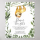 Give your guests a lovely direction with our sloth diaper thoughts baby shower activity sign, featuring watercolor greenery eucalyptus garland and elegant handwritten style font.