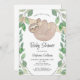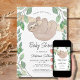 This cute gender-neutral Baby Shower invitation is decorated with a watercolor baby sloth and jungle leaves.