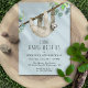 "Come hang with us" fun birthday party invitations with a watercolor illustration of a sloth hanging from a tree. Simple and cute cards with black handwritten-style font on a light blue background. The reverse side features a wood pattern. Background colours can be changed, if desired, by using the design tool.