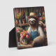 This charming sloth is dressed to the nines in a straw hat and overalls, and it has a vase of flowers on a counter before it. Its gentle expression and relaxed pose are sure to bring a smile to your face every time you see it. It is a great gift for any sloth lover or plant lover in your life. Order your sloth florist today and add a touch of whimsy to your life.