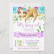 Sloth let's hang out girl invitation, purple. invitation