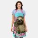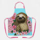 A cute sloth sitting amongst pink flowers against. a backdrop of blue