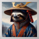 Unleash the power of tranquillity and strength combined in our exclusive ‘Sloth Samurai’ artwork! Witness the serene yet formidable sloth, adorned in traditional samurai attire, embodying a fusion of calmness and valour. Dressed in a blue robe with intricate golden designs, our sloth is set against a backdrop of misty mountains and forests under a cloudy sky, creating an atmosphere of mystique and ancient wisdom. This unique piece captures the essence of two worlds merging - nature’s most laid-back creature and Japan’s iconic warrior.