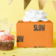 This is a cool looking classic Slow Caution Sign style with black lettering and orange background colour road signage design. Serious, fun, funny, humour, comical and a brilliant idea for gift giving.