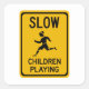 Slow - Children Playing, Traffic Warning Sign, USA Square Sticker