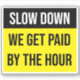 Slow Down We Get Paid By The Hour Sign