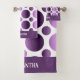 Feminine regularly arranged purple polka dots pattern bath towel set. The towels have a white background with two different sizes of polka dots arranged in an orderly manner. Edit the name and add your own.
