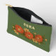 A small green bag with an elegant hand-drawn floral design of red and yellow flowers.
