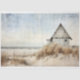 Embrace the beauty of a small picturesque beach house amidst sand, tall grass, and the ocean on this beautiful decoupage paper. Elevate your creations with this tranquil, artful masterpiece in soft, muted hues, reminiscent of a painting.