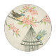 Nancy Slocum's have painted many birds throughout the years. This image portrays two small blue and yellow birds perched on a branch surrounded by pink flowers and looking curious about a birdcage. Get this cool bird-themed art piece on your Zazzle product today.