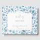Wedding Guest Book with small blue flowers floral pattern. Hand drawn abstract flowers and leaves on white background. Festive Ornate floral background. Abstract floral backdrop with floral branches. Vintage cute goldleaf floral twigs, elegant flowers, spring or summer floral design, romantic bouquet. Botanical plot. Gold foil Cute flower botany Wedding Guest Book. Small Flowers Collection.