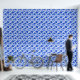 Bold blue and white roses are stung on their own, but look closely - there are faded light blue leaves in the background of white.
