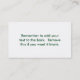Business Card, Size: Mini, 76 mm x 25 mm,Paper: Signature Matte, Corners: Squared