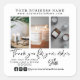 Thank your customer for their purchase with these modern thank you photo stickers. Design features 3 photos, typography script ''thank you for your purchase'', your logo, social media. Personalise further with your email/website.