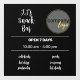Decal design for small business with logo branding and trading hours for customers as well custom text to highlight products on offer. In this template there is a snack bar food truck style business, with food items for purchase specified beneath the opening hours. This template also includes the company name and website alongside the business hours of operation.
