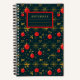 A traditional holiday pattern of red ornaments and gold snowflakes on a rich, dark background. Perfect seasonal stationery and a joyful Christmas gift.