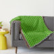 A quality printed throw has its advantages. This is a much finer weave throw than its loopier cousins, and though lighter, it is worth the investment for custom room accessorizing. The back is much prettier than the typical brown, and the fringe on the long sides very vivid, the selvage nicely done. Before photographing, I washed the throw in cold water, delicate, with a thicker woven throw the same size. On tumble dry low, this throw was dry in half the time as the other. This is a very practical quality if you use throws for furniture covers or to wrap up in frequently. The sleekness of the fabric makes it a great layer for accenting or protecting without the feeling of sitting on too much stuff. Perfect for napping or when you feel a light chill coming on. The color printing is beautiful and on this fabric, matched the design and color of my Photoshop image. This is an advantage for blending room fabrics and colors. The fringe on the short sides prints the colors from the design image and therefore varies from the side fringe. I streaked a white fractal line through the plaid pattern to give the illusion of weaving. This printed as crisp as an illusory thread, and put some white in the short side fringe, showing another advantage of print vs loomed- for artistic purposes, line lines, detail, and color integrity can be planned and preserved. My loomed throws have color limitations and more of a needlepoint texture. Print throws reproduce an exact image. The throw felt a little stiff straight out of the package, but this went away in the first delicate wash. Of course I searched the wash water for ink or bleeding and there was none.