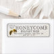 Eye-catching label for honeycomb in plastic honeycomb container. Personalise with your apiary name, address and product net weight. Yellow and gold iridescent honeycomb design in background, complete with its own realistic honeybee.