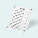 Small Menu Sheet. Feature descriptions of Menu Items as Required. Menu text is set centrally.