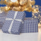 A wrapping paper designed with a navy blue and white gingham pattern in small size.