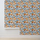Timeless elegance with a vintage touch. This exquisite wallpaper features California poppies in a delicate, smaller-scale pattern, enhancing its classic, vintage appeal. The vibrant orange blooms and deep blue-green leaves are intricately arranged against a warm cream-coloured background, evoking the charm of antique botanical prints and the flowing artistry of Art Nouveau design.