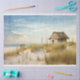Transform your crafts with our stunning decoupage paper featuring a serene coastal scene. Adorned with a quaint straw-covered beach house, sandy shores, tall grass, and a tranquil ocean backdrop, its muted, painterly charm will add an enchanting touch to your projects. Dive into creativity today!