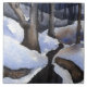 This image is from my original watercolor painting of a small creek along the edge of the field behind my house. The evening waters looked so dark in the evening light that the contrast with the snow demanded a painting.