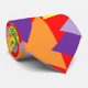 This colourful tie has a red background and is covered in small random multi-coloured triangles.