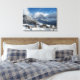 Canvas landscape print of the small village Sankt Magdalena in Villnoess valley with the Geisler Dolomites mountain peaks in the background covered in snow in winter season in South Tyrol, Italy.