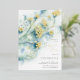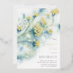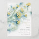 Engagement Party Invitation with small white flowers. Hand drawn abstract flowers on a blue green background. Soft Ornate floral watercolor painting. Abstract nature backdrop with gypsophila floral branches. Vintage cute floral twigs, elegant flowers, spring or summer floral design, romantic bouquet. Botanical plot. Delicate flower botany Engagement Party Invitation. Small White Flowers Collection.