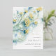 Save The Date Foil Invitation with small white flowers. Hand drawn abstract flowers on a blue green background. Soft Ornate floral watercolor painting. Abstract nature backdrop with gypsophila floral branches. Vintage cute floral twigs, elegant flowers, spring or summer floral design, romantic bouquet. Botanical plot. Delicate flower botany Save The Date Foil Invitation. Small White Flowers Collection.