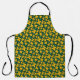 Seamless floral pattern with small yellow flowers and turquoise dots on dark green background.