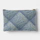 This blue zippered toiletry bag has an elegant brocade pattern.