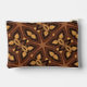 This black, ochre and rust, zippered toiletry bag has geometric tile pattern.