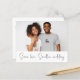 A budget price SMALLER 4.5” x 5.6” alternative. Available in a SEMI-GLOSS 110 lb CARD STOCK which is the default option (thicker for invitations), OR a SATIN FINISH 80 lb THINNER PAPER STOCK (ideal for enclosures). Envelopes are an optional extra and are slightly larger than the card size. . For times when a socially distanced wedding ceremony is necessary and it is necessary to uninvite some guests and to invite them to the live streaming , this modern contemporary design has your photo on the front, with the words same Love. Smaller wedding in an elegant set handwritten style script. On the back, easily personalise with your details.