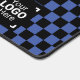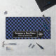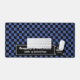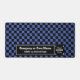 A smart blue and black look for your workplace, using the classic chequerboard design as a background. The chequered flag style squares capture the retro trend and add a masculine look that can still combine with bright colours to include your corporate palette or small business brand. It's simple to upload your logo to appear beside the customisable text, which will allow you to personalise for an individual or a company boss.
