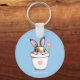 Smart Bunny with Flower & Heart on Light Blue Key Ring