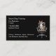 Clever business cards for a dog training service designed with a graphic of a dog sitting on an office chair and simple editable template you can customise online. A truly unique business card your customers will remember that works for anyone that does dog training, obedience, agility, or classes.