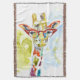 This watercolor print features a colourful giraffe in eyeglasses | By Jennifer Goldberger