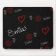 This design features A cute little uplifting doodle design with red hearts a person figure red flowers and the word smile.